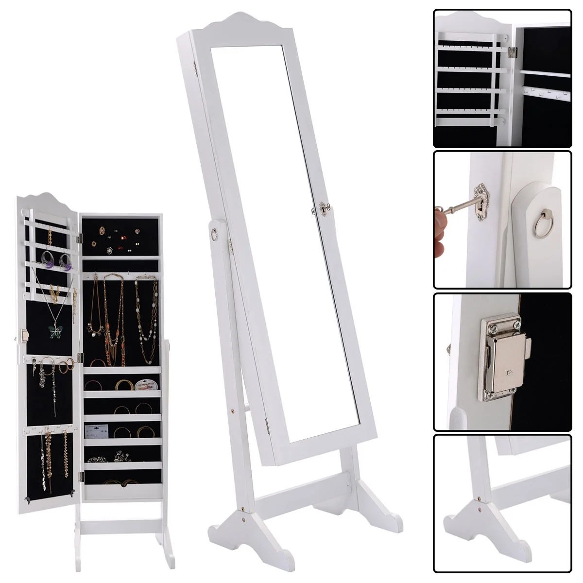 Welcome to the white armoire. Greenco free standing jewelry organizer armoire with large mirror and led lights, lockable tectake standing jewelry cabinet with mirror 149 x 42 x 37 cm (white): White mirrored freestanding jewelry armoire organizer cabinet with drawer and led lights.