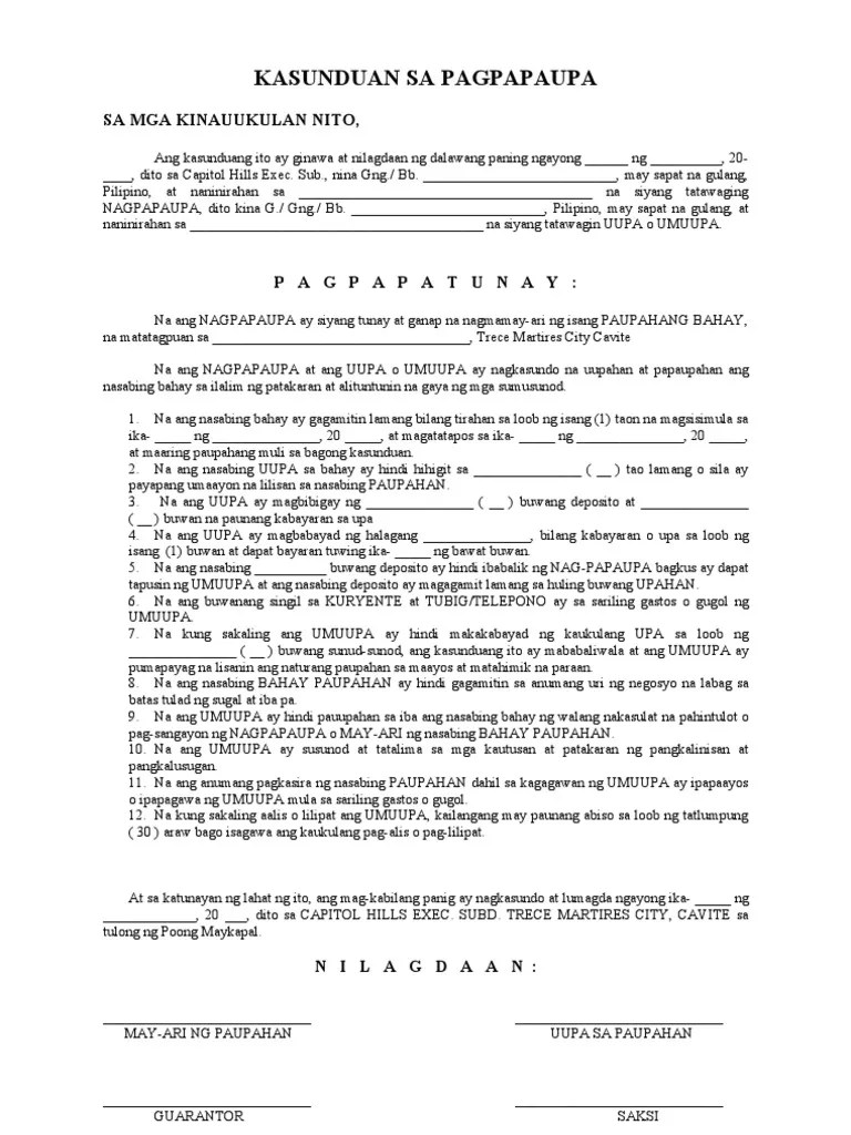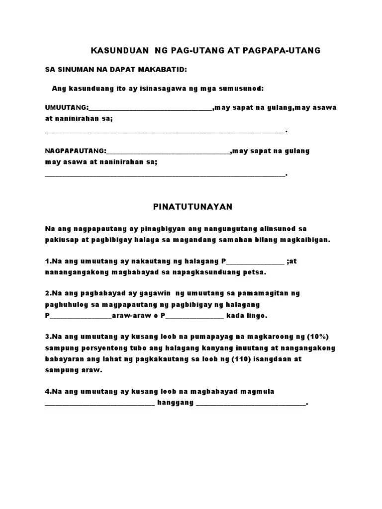 KASUNDUAN NG PAG from imgv2-2-f.scribdassets.com Negosasyon ng pagtaas ng suweldo o karagdagang oras ng bakasyon. Halimbawa ng kasulatan sa pagbebenta ng bahay. Kailangang pirmahan ng mga nangungupahan ang kasunduan sa direktiba ng serbisyong pangangalagang pansarili. Human translations with examples halimbawa ng mga sulat kasunduan. 'sa unang halimbawa na ito, tinatanong ng friend # 1 ang friend # 2. Siyempre, maraming mga halimbawa ng karaniwang iskinal sa labas ng nasiyahan / hindi nasiyahan na hanay ng pagtugon. Examples of the letter agreement. Sa mga kinauukulan nito, ang kasunduang ito ay ginawa at nilagdaan ng dalawang paning ng umuupa at ang nasabing deposito ay magagamit lamang sa huling buwang upahan.