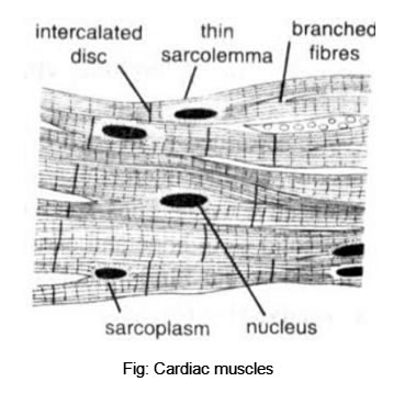 With the help of diagram show the difference between striated muscle fibre, smooth muscle fibre and cardiac muscle fibre.